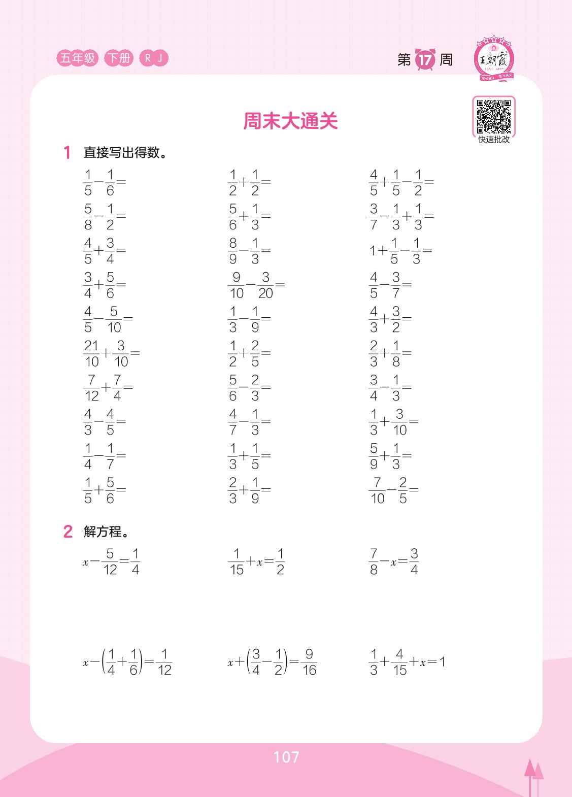 2023下册五年级数学人教版 第17周 周末大通关