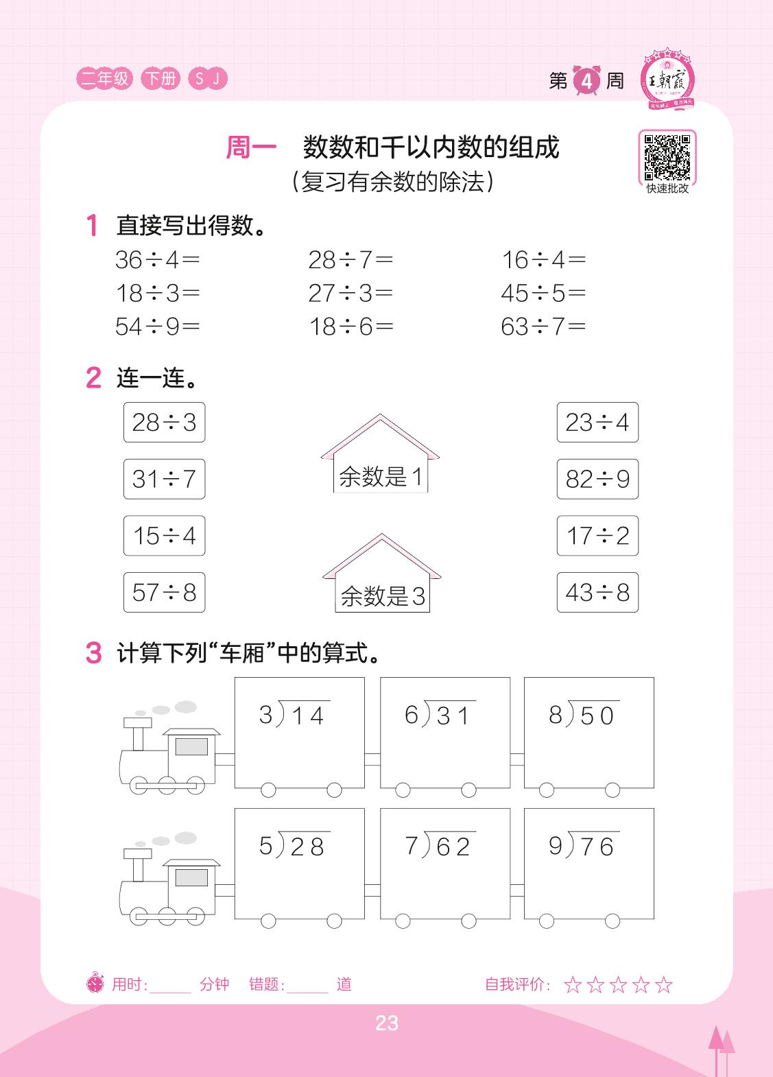 2023下册二年级数学苏教版 第4周 周一