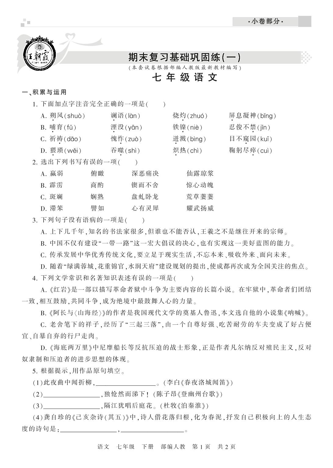 王朝霞期末小卷七年级下册语文(人教版)_R210802164454【0】