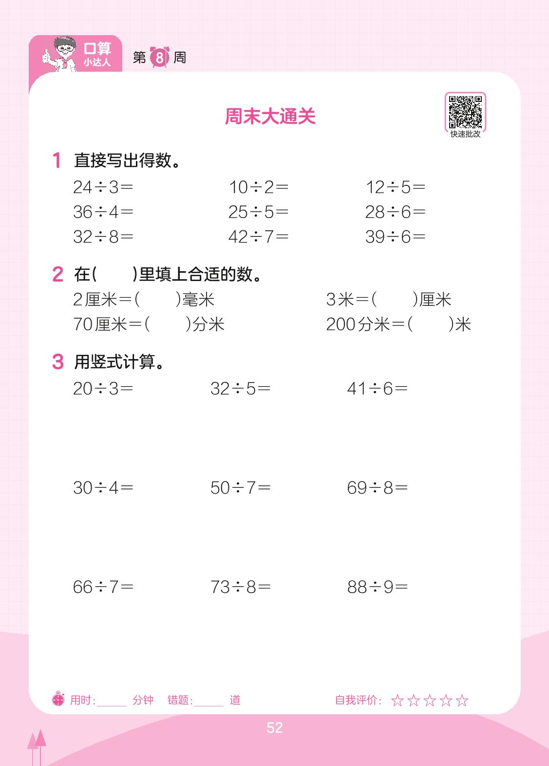 2023下册二年级数学苏教版 第8周 周末大通关