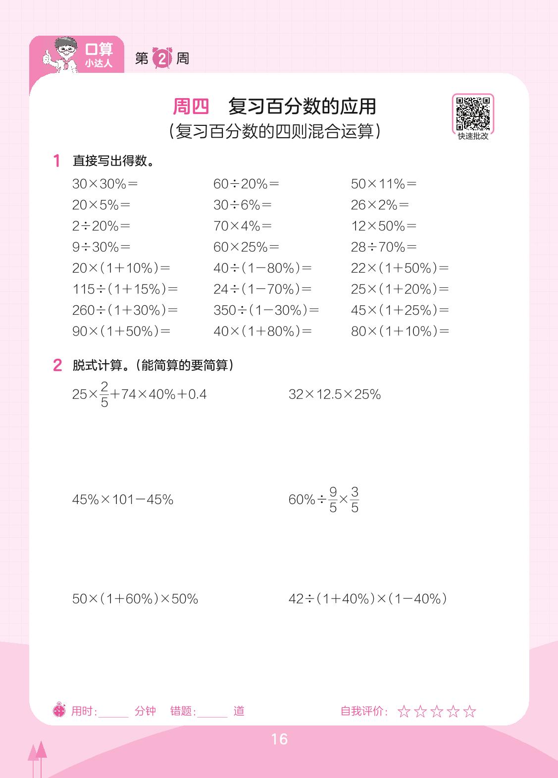 2023下册六年级数学人教版 第2周 周四