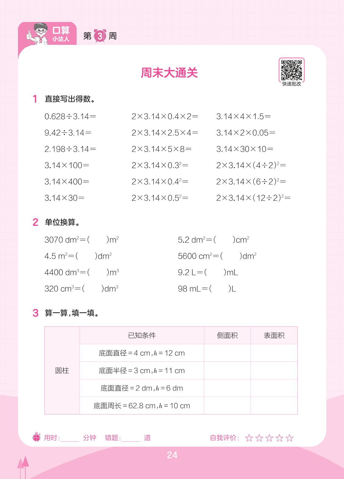 2023下册六年级数学人教版 第3周 周末大通关