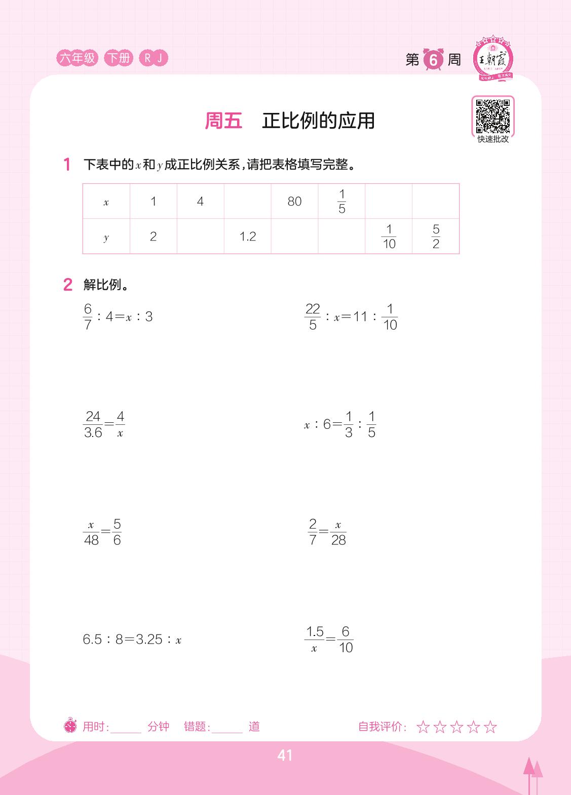2023下册六年级数学人教版 第6周 周五