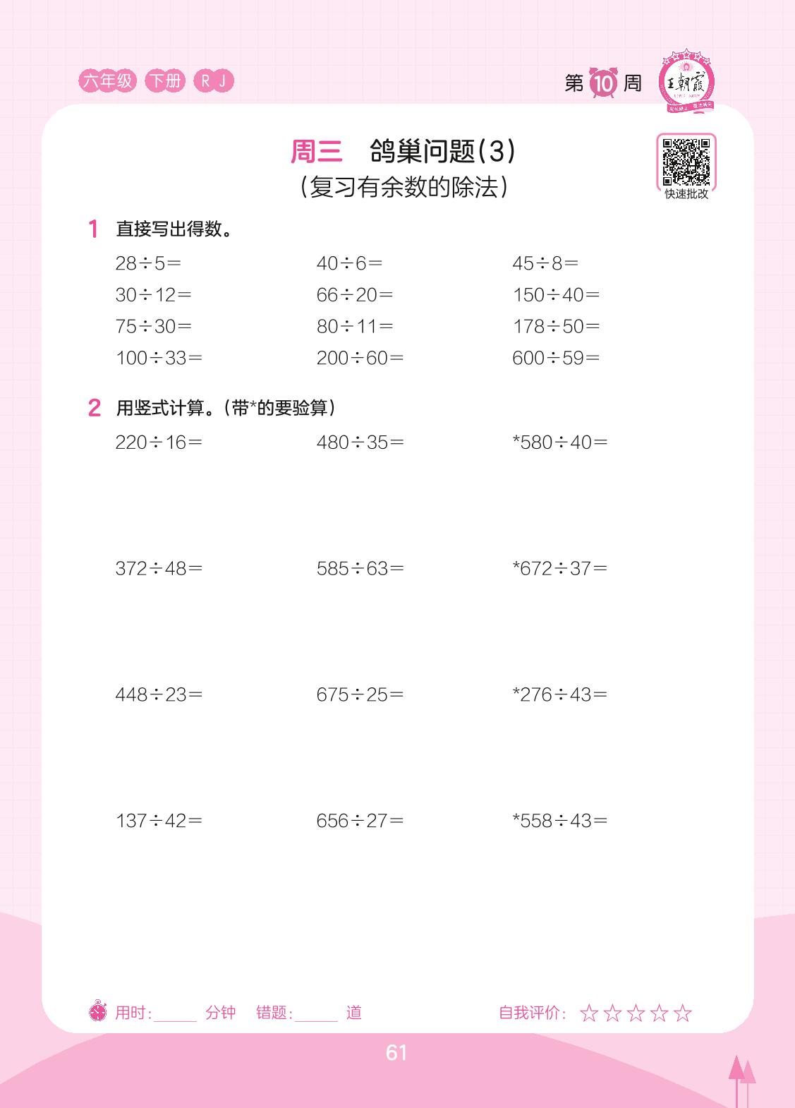 2023下册六年级数学人教版 第10周 周三