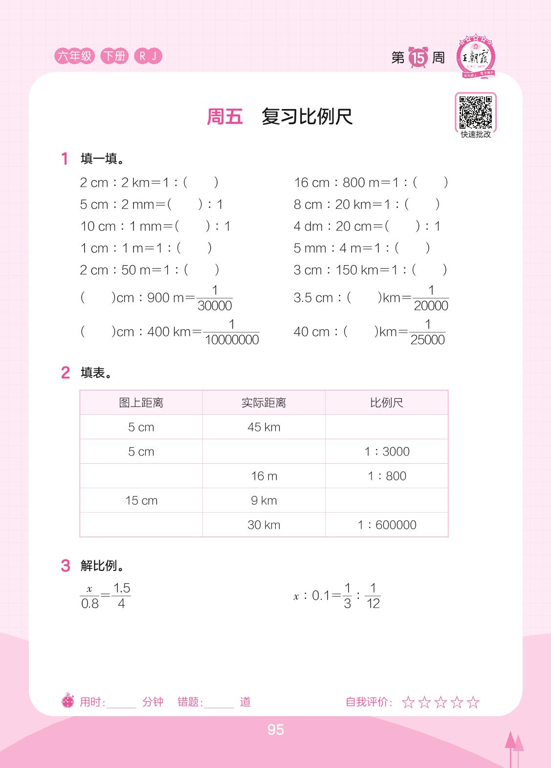 2023下册六年级数学人教版 第15周 周五