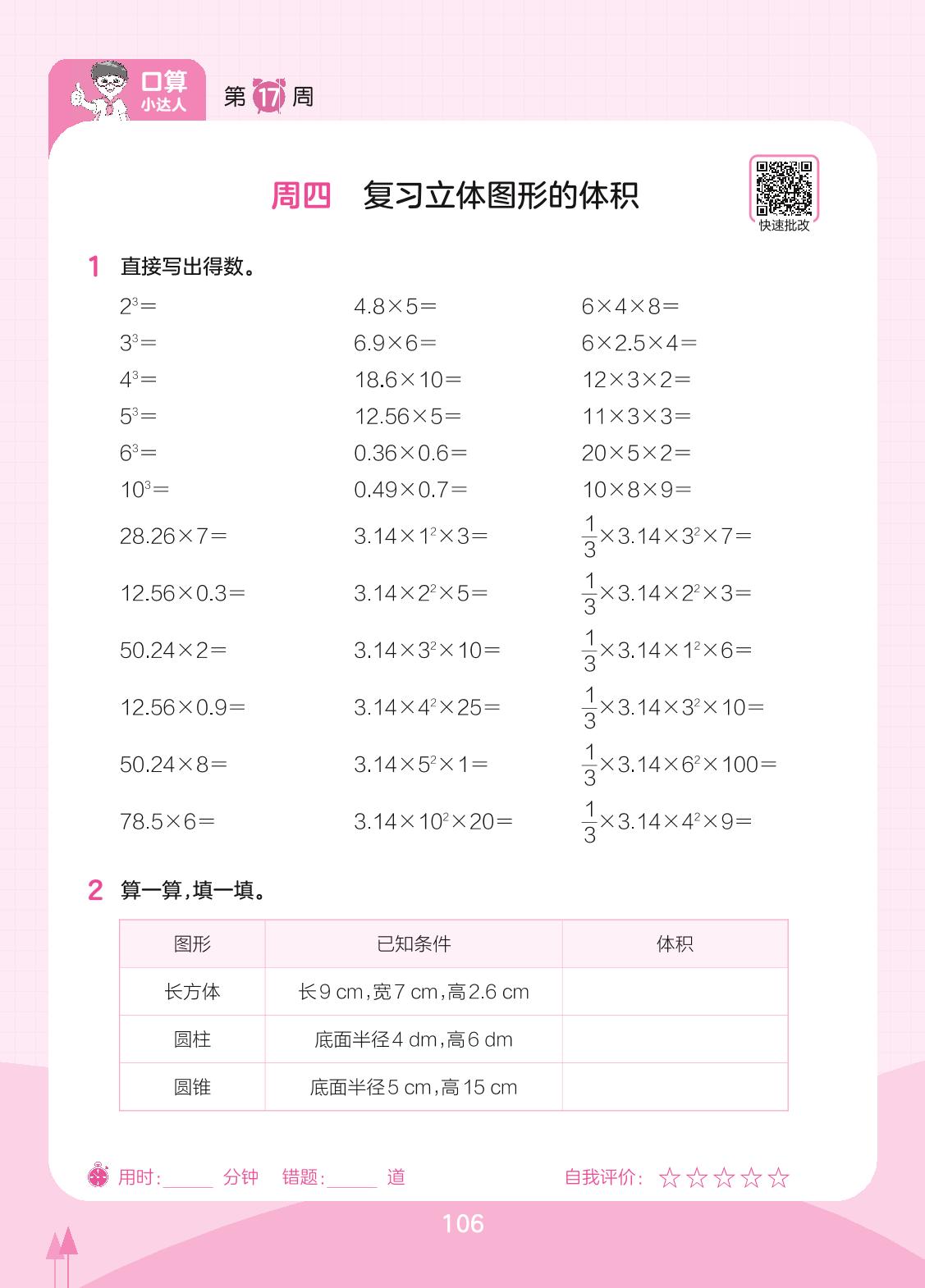 2023下册六年级数学人教版 第17周 周四