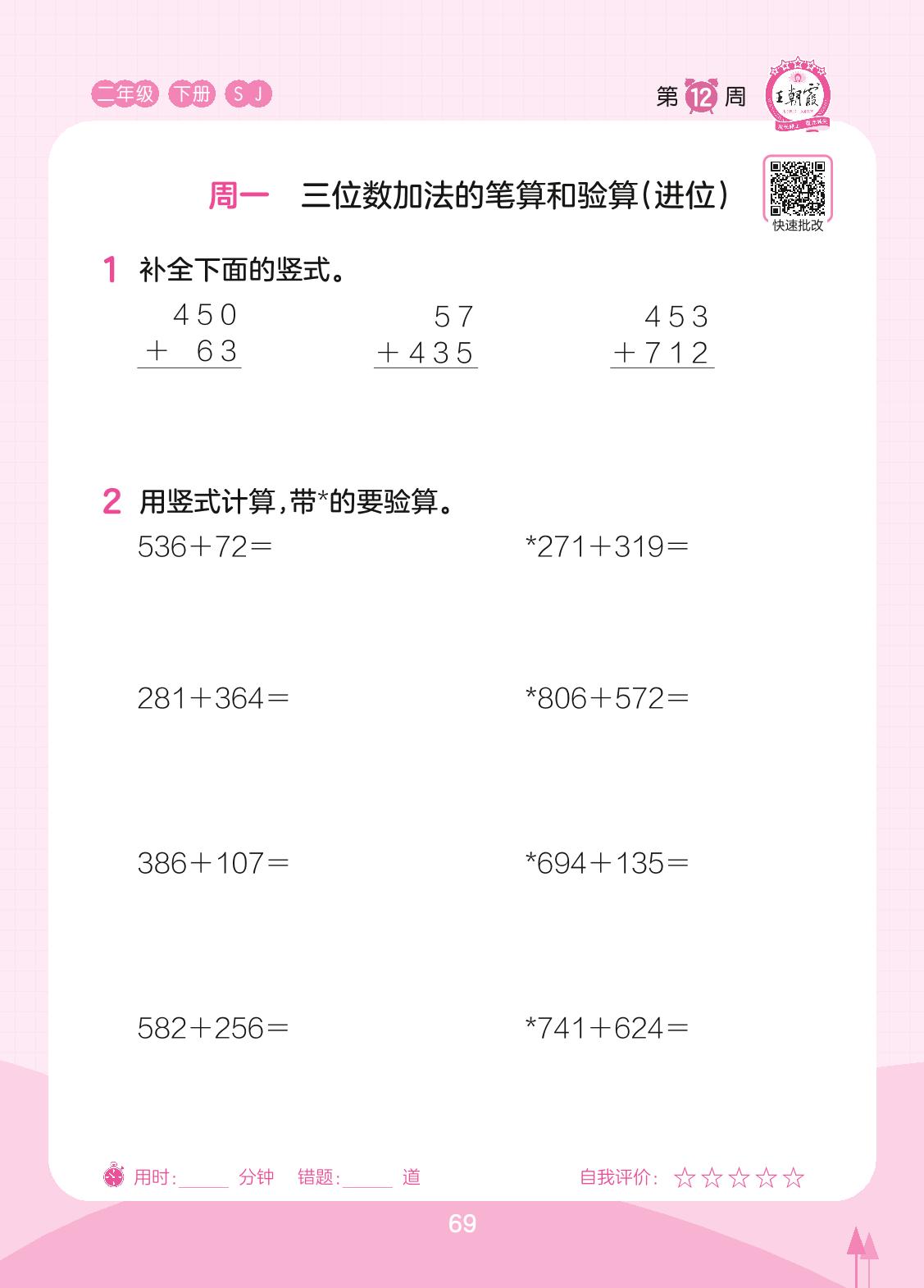 2023下册二年级数学苏教版 第12周 周一