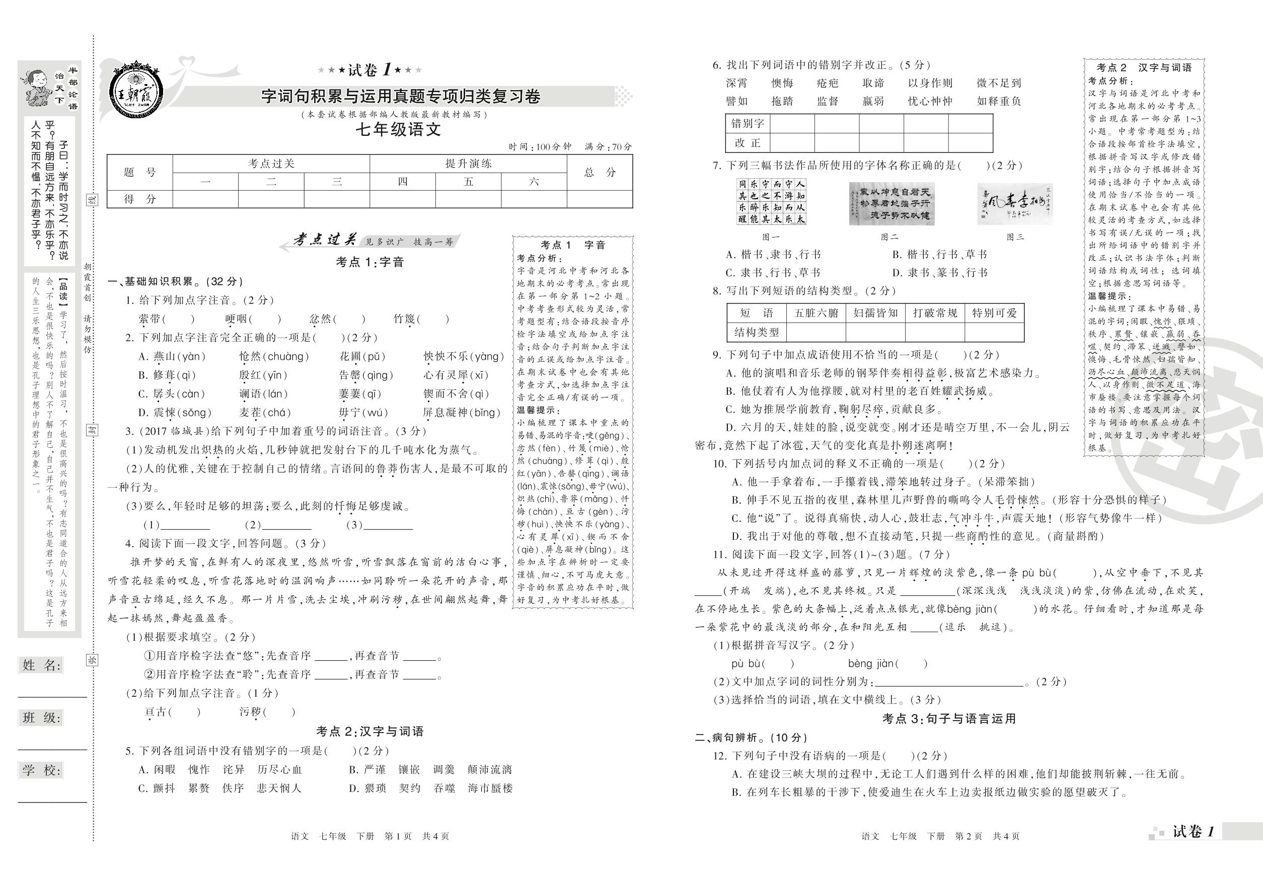 王朝霞期末专项卷——字词句积累与运用真题专项归类复习卷七年级下册语文(人教版)_R210802164720【1】