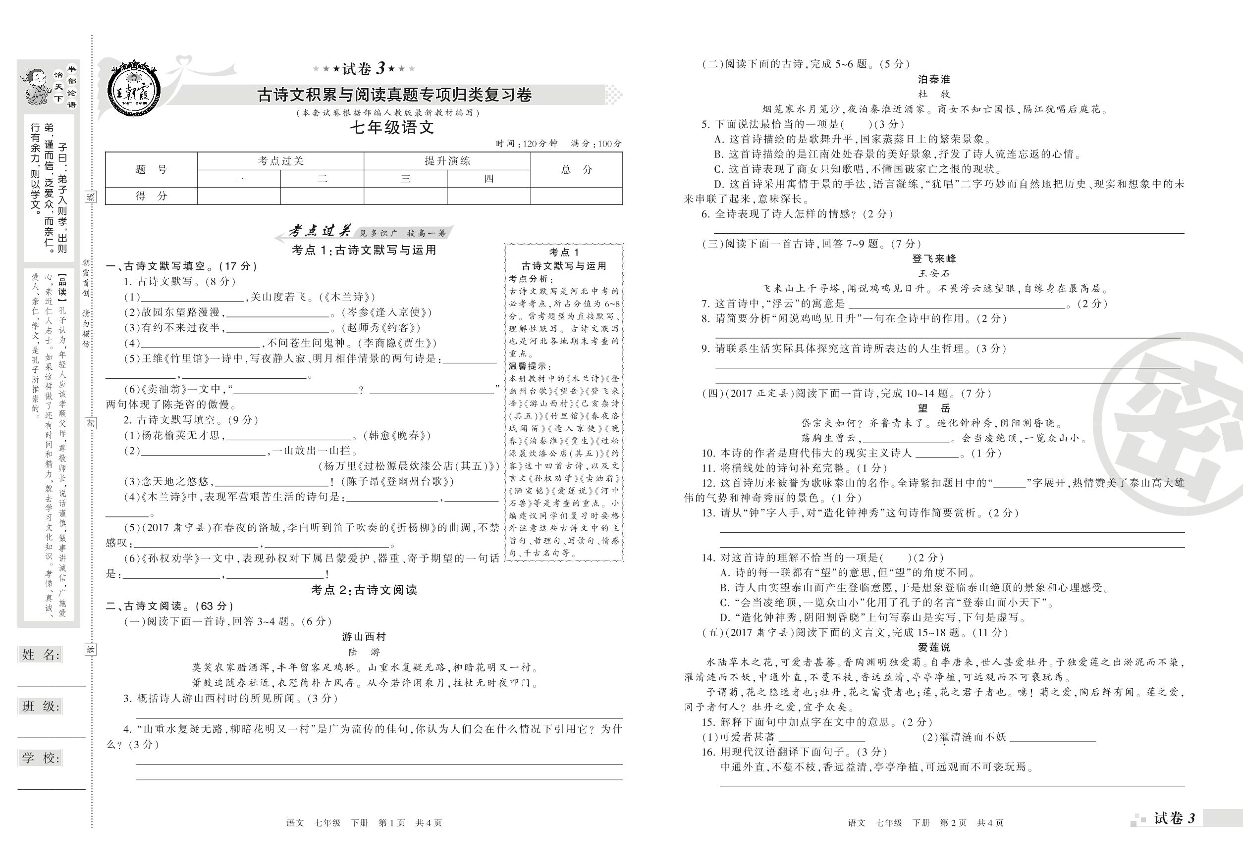 王朝霞期末专项卷——古诗文积累与阅读真题专项归类复习卷七年级下册语文(人教版)_R210802164737【3】