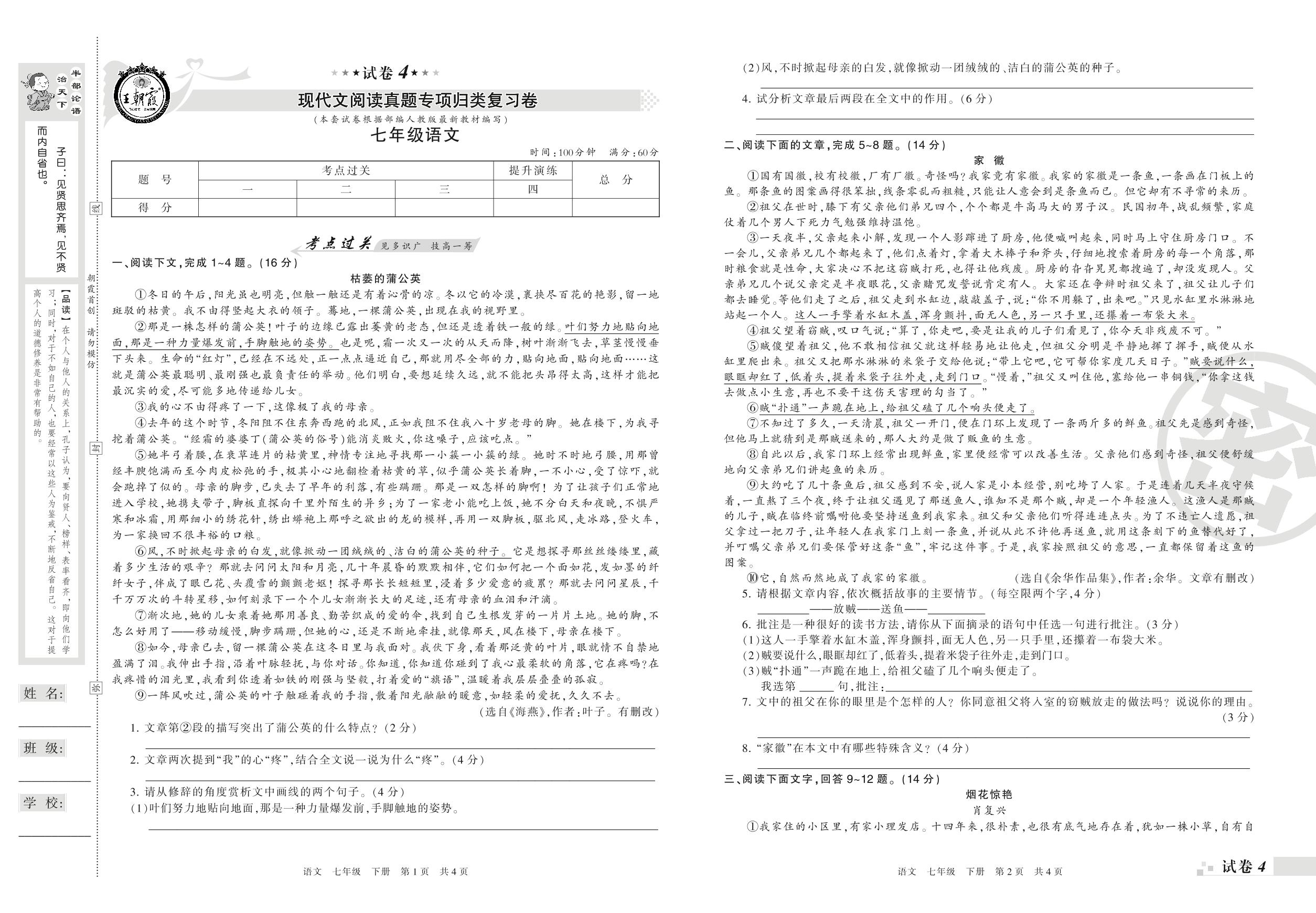 王朝霞期末专项卷——现代文阅读真题专项归类复习卷七年级下册语文(人教版)_R210802164744【4】