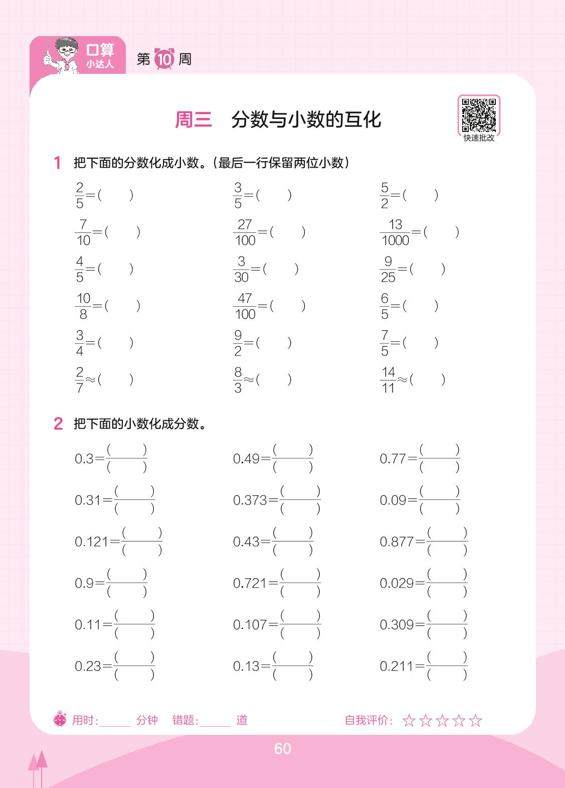 2023下册五年级数学苏教版 第10周 周三