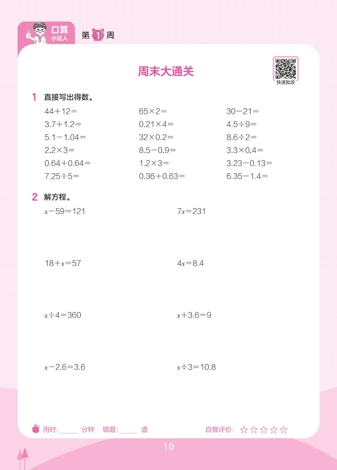 2023下册五年级数学苏教版 第1周 周末大通关