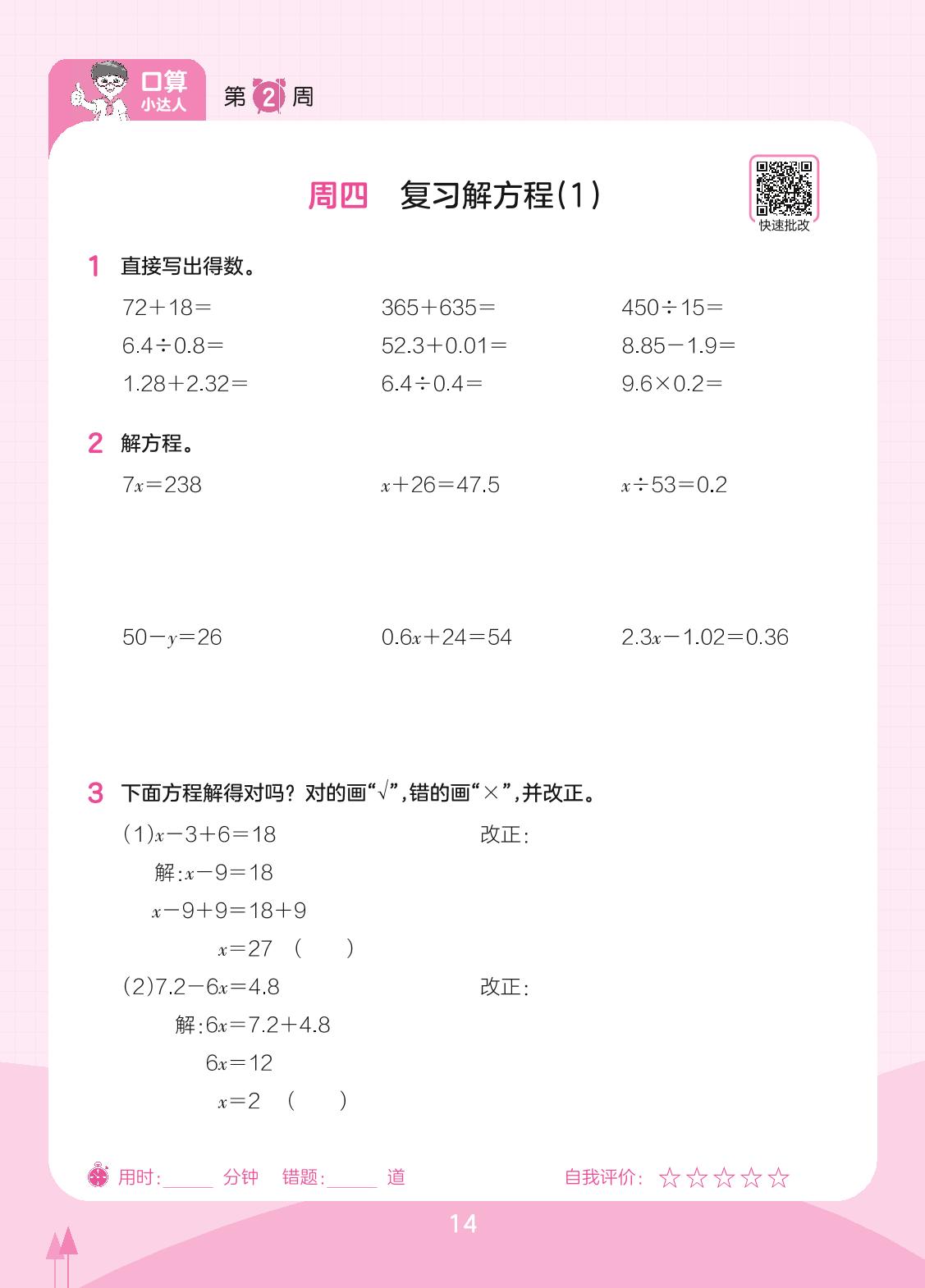2023下册五年级数学苏教版 第2周 周四