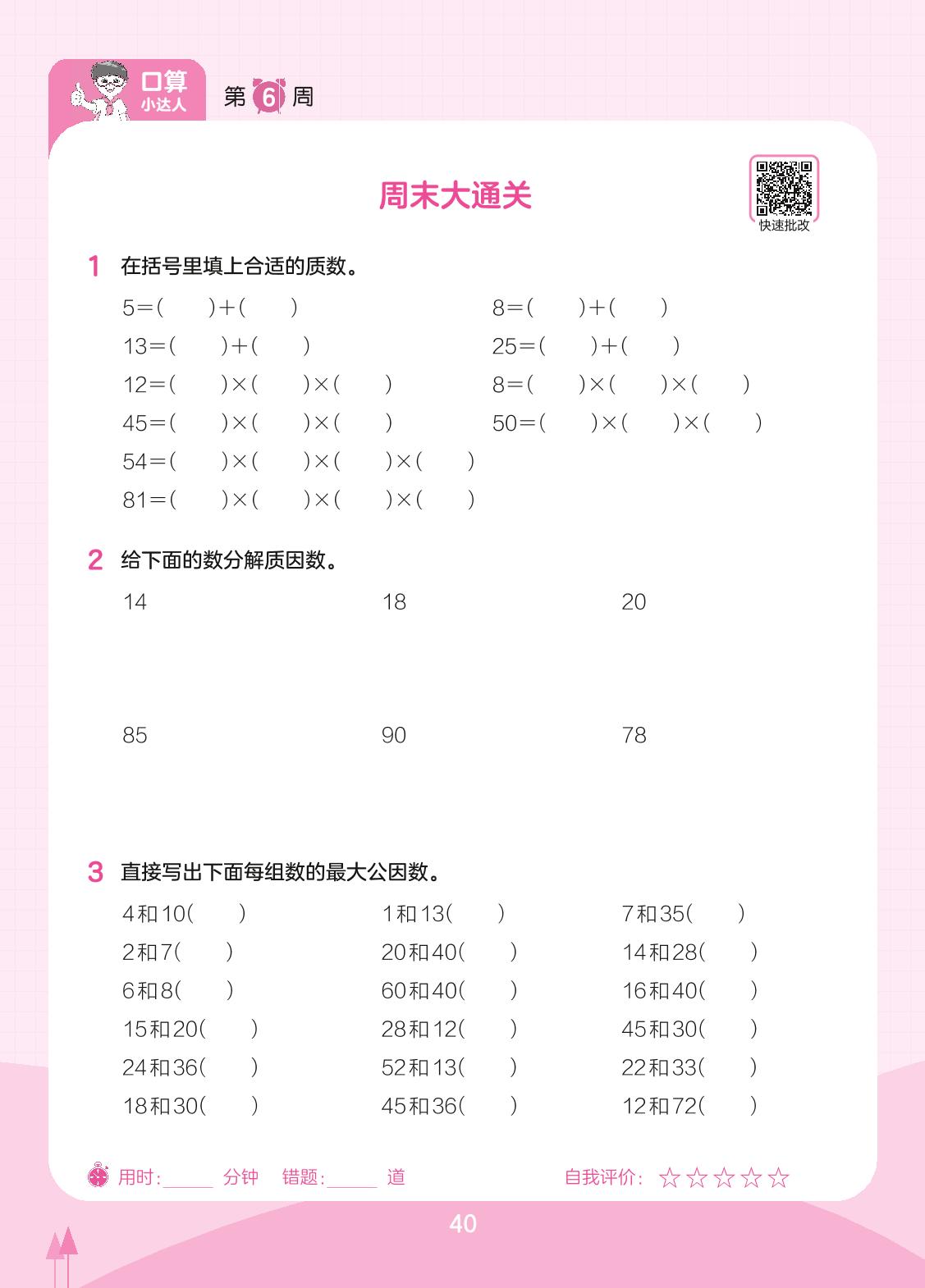 2023下册五年级数学苏教版 第6周 周末大通关