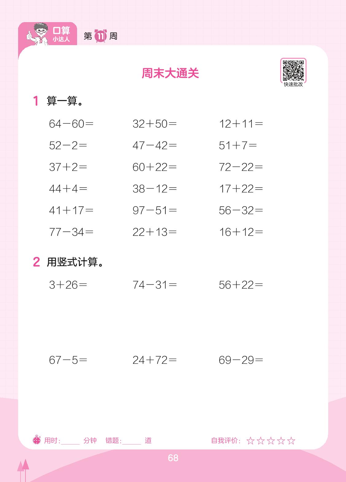 2023下册一年级数学北师版 第11周 周末大通关