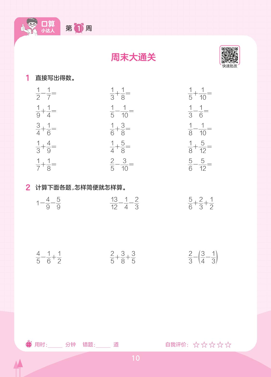 2023下册五年级数学北师版 第1周 周末大通关