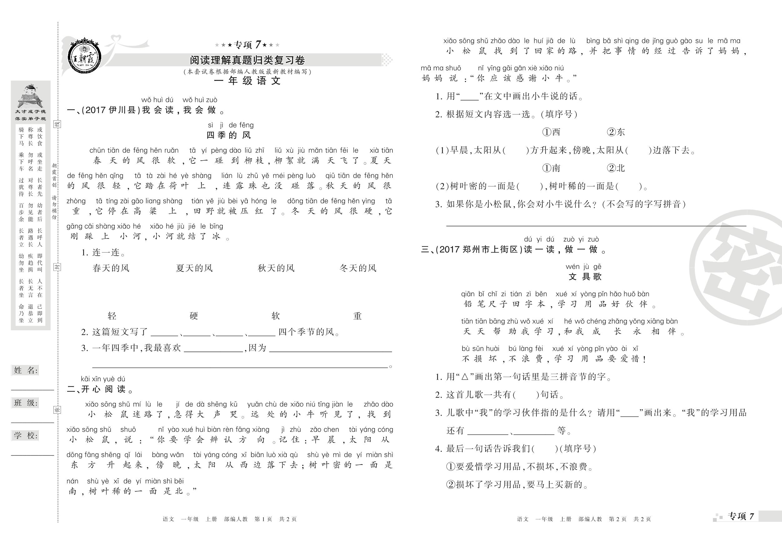 王朝霞期末专项卷一年级上册语文(人教版)_R210731185459【0】