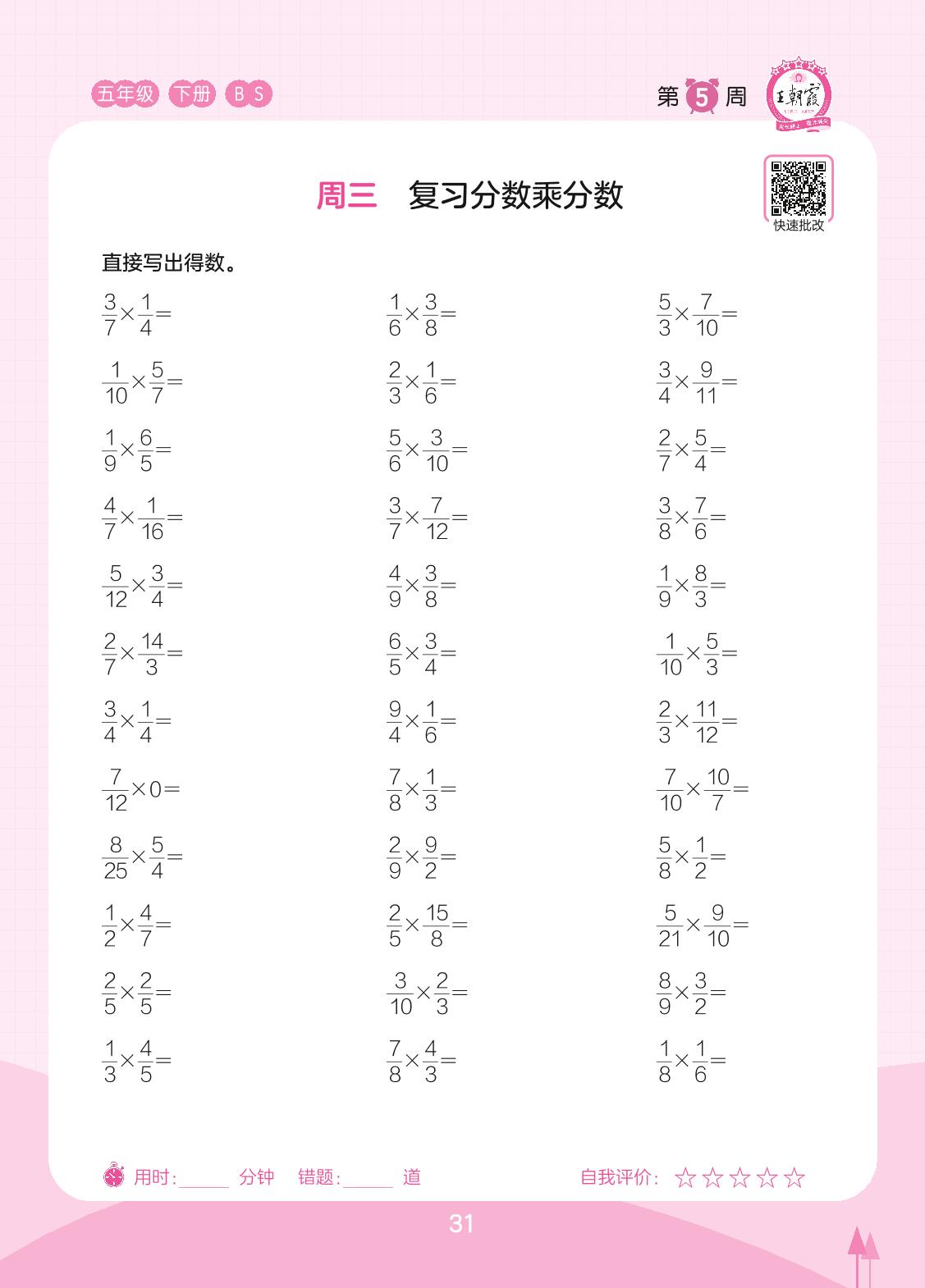 2023下册五年级数学北师版 第5周 周三