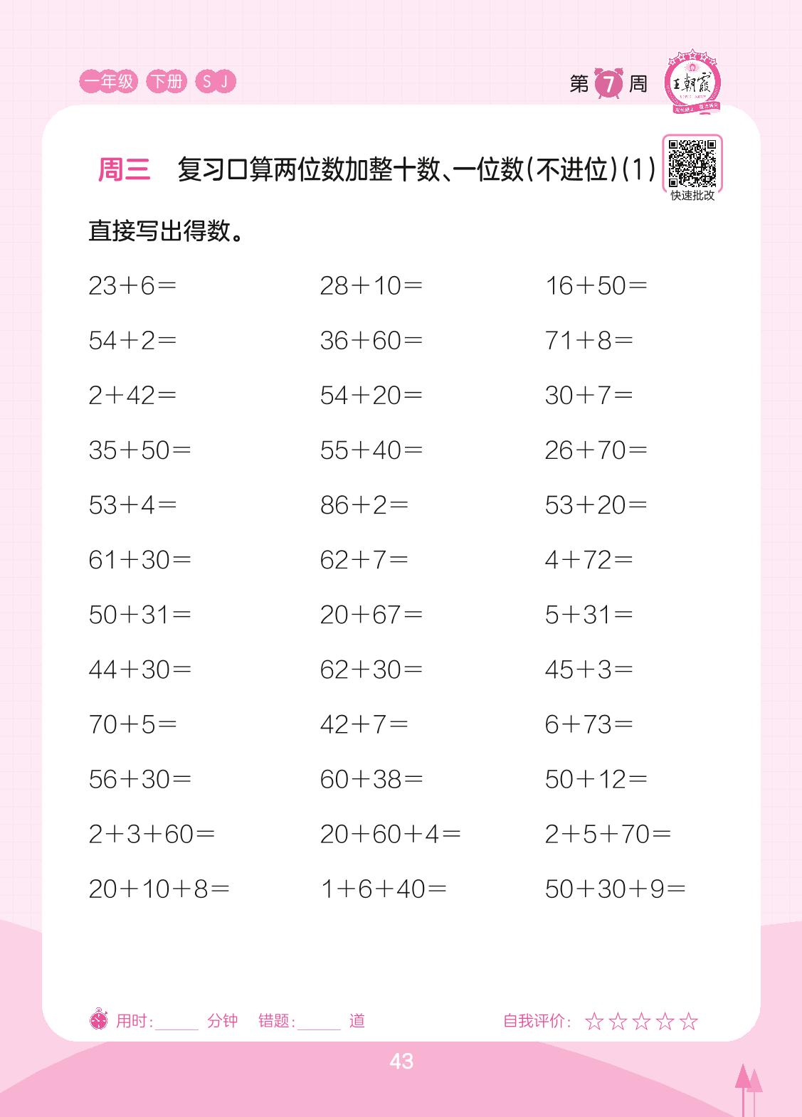 2023下册一年级数学苏教版 第7周 周三