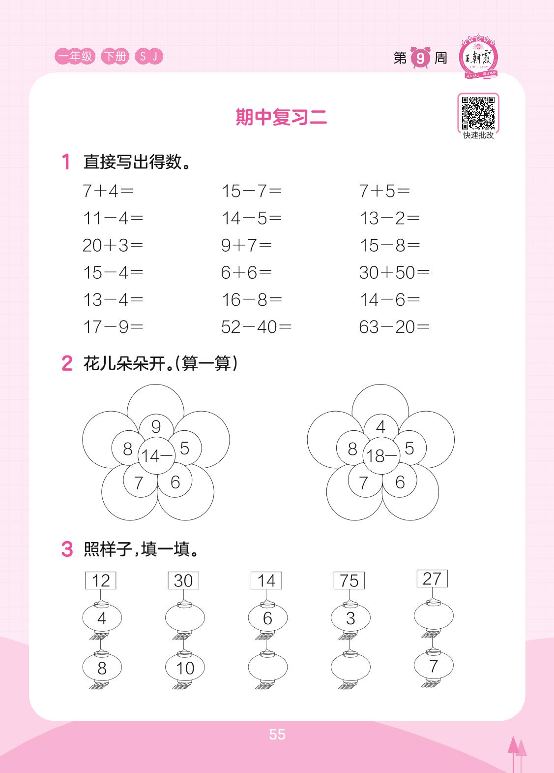 2023下册一年级数学苏教版 第9周 期中复习二(计算专练)