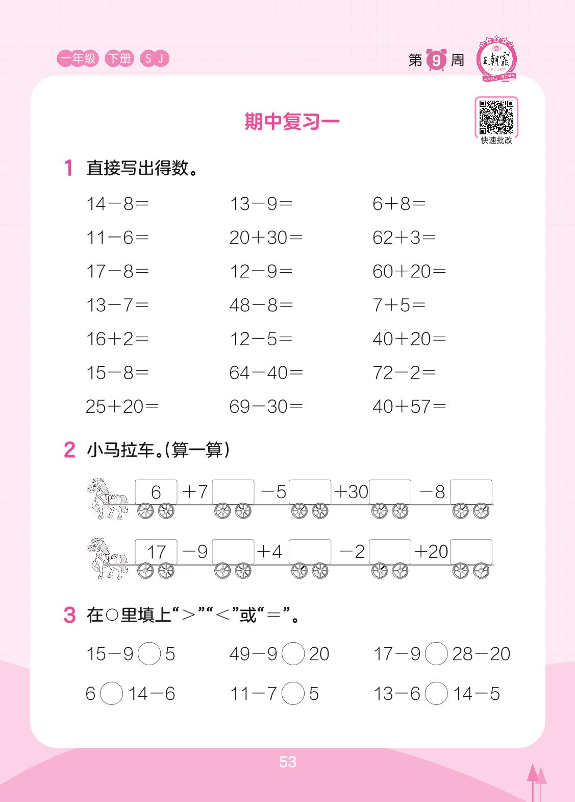 2023下册一年级数学苏教版 第9周 期中复习一(计算专练)