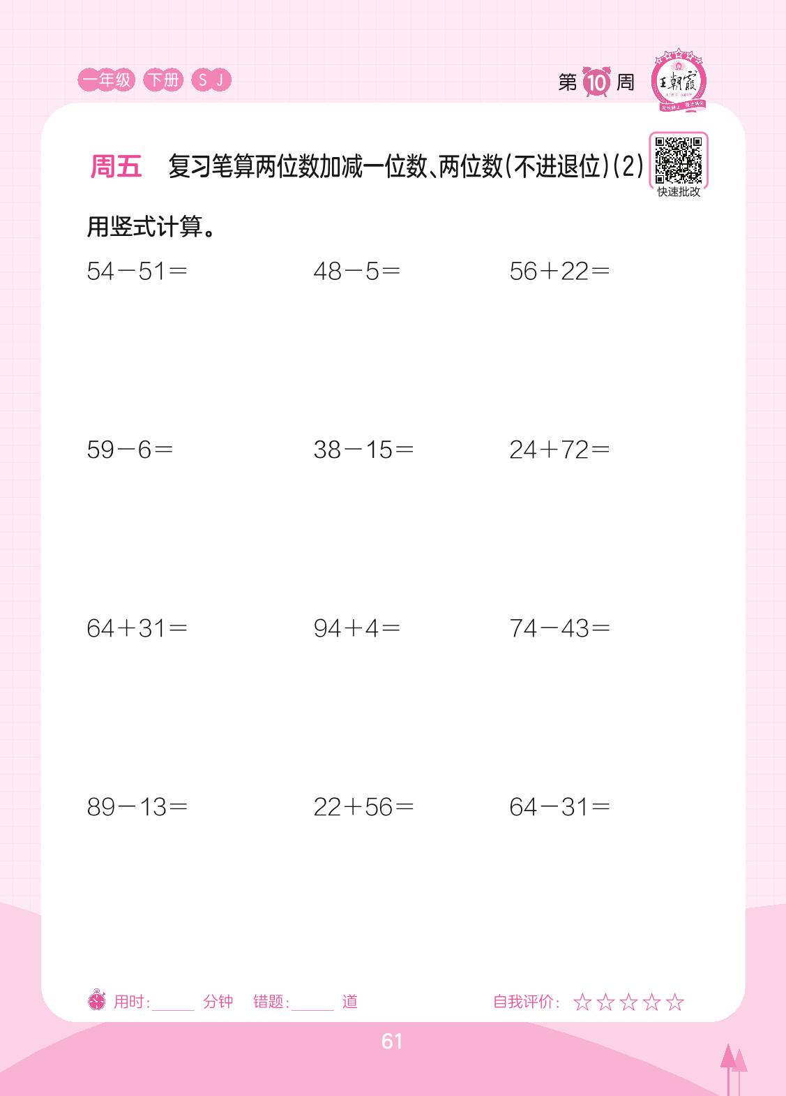 2023下册一年级数学苏教版 第10周 周五