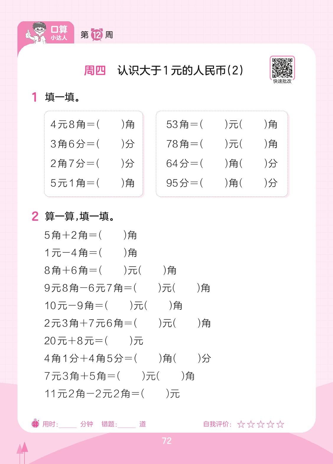 2023下册一年级数学苏教版 第12周 周四