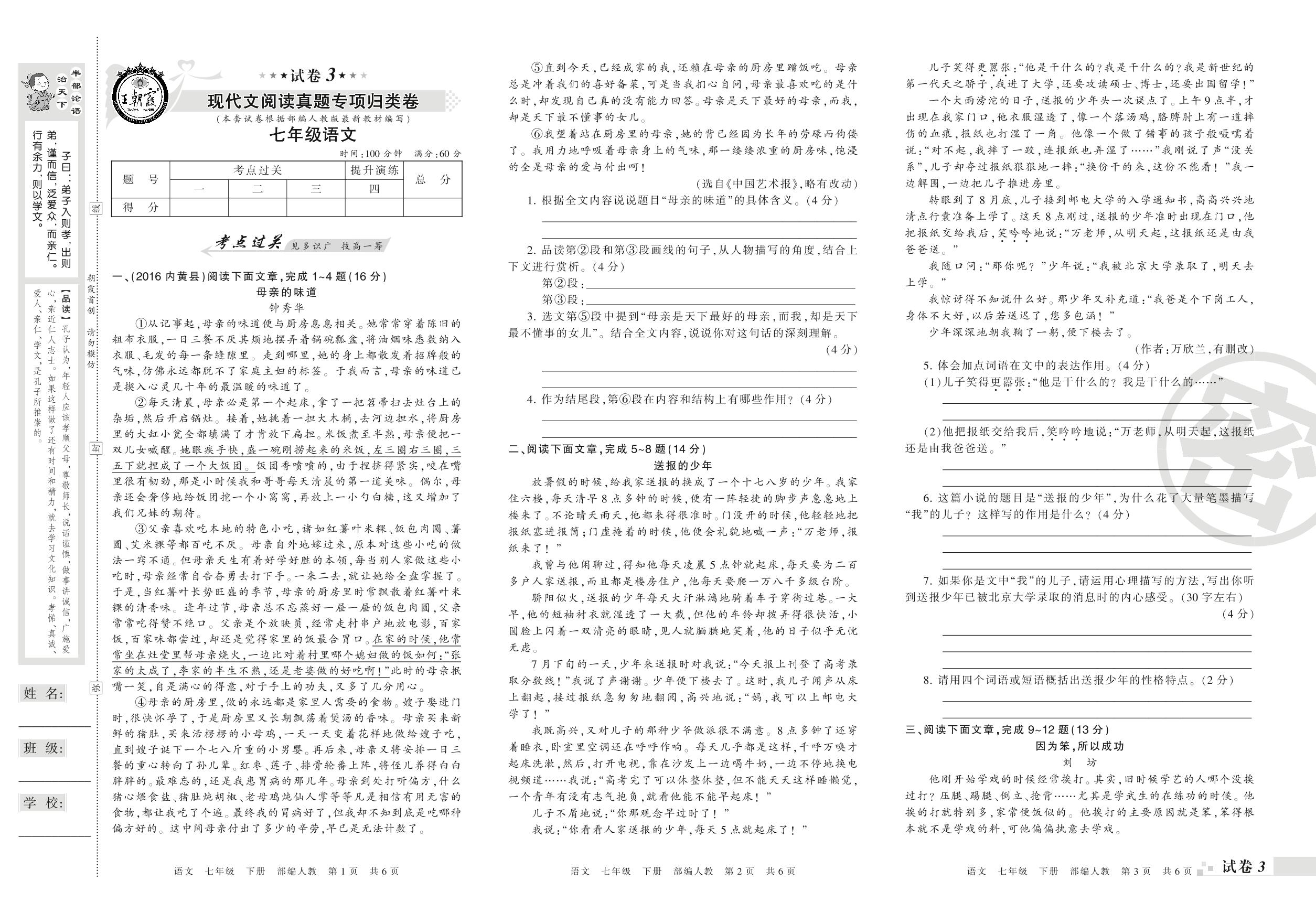 王朝霞期末专项卷——现代文阅读真题专项归类卷七年级下册语文(人教版)_R210802165249【3】