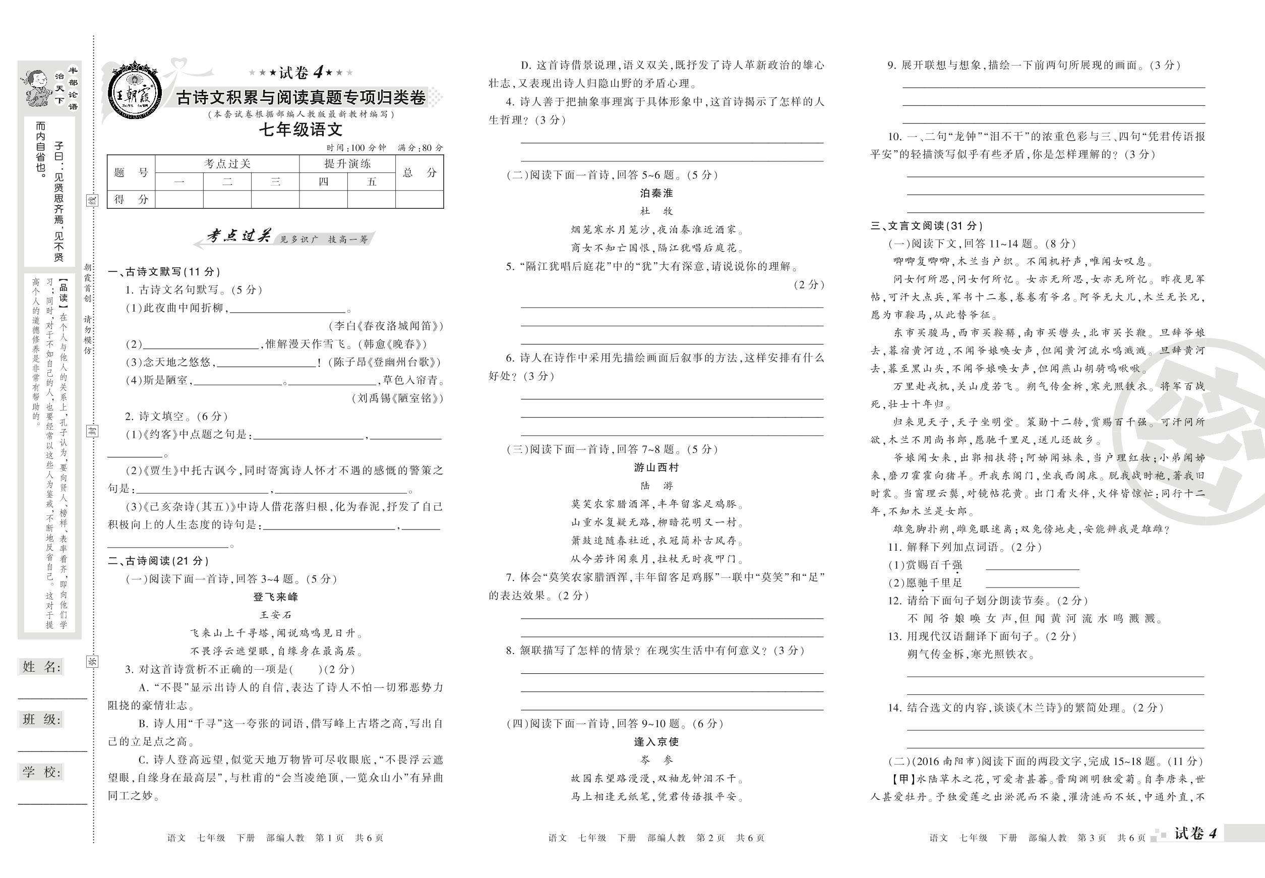 王朝霞期末专项卷——古诗文积累与阅读真题专项归类卷七年级下册语文(人教版)_R210802165314【4】