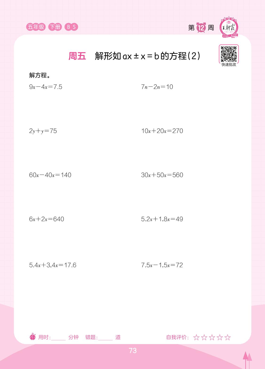 2023下册五年级数学北师版 第12周 周五