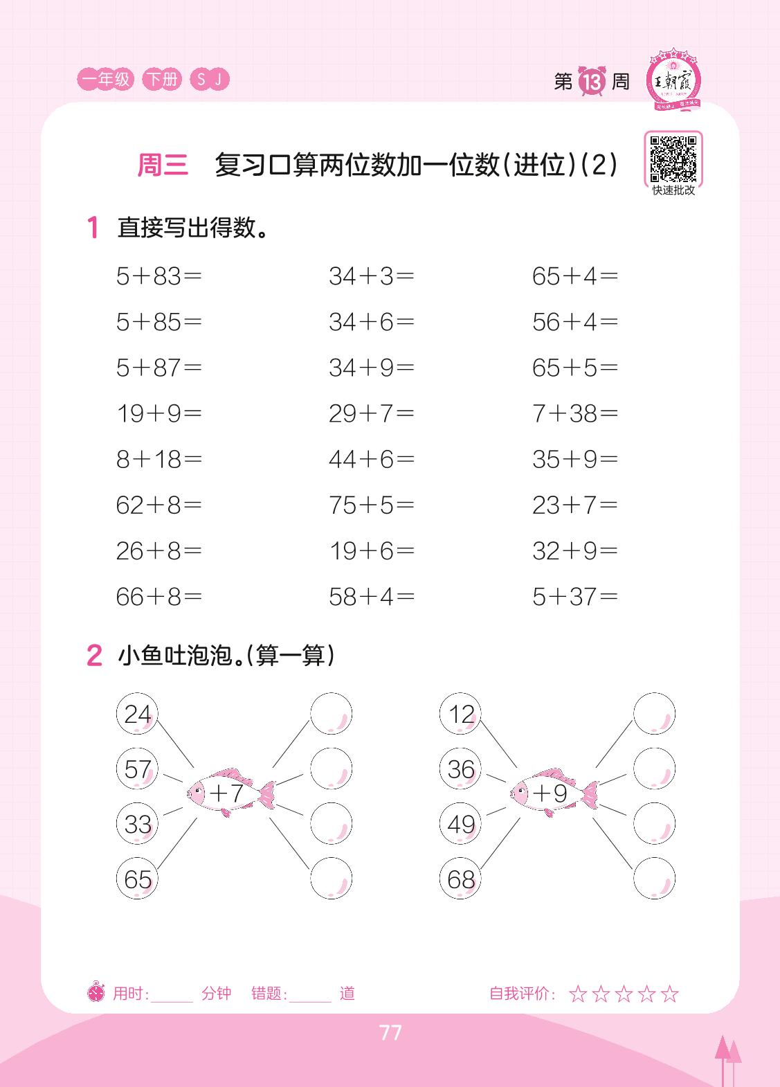 2023下册一年级数学苏教版 第13周 周三