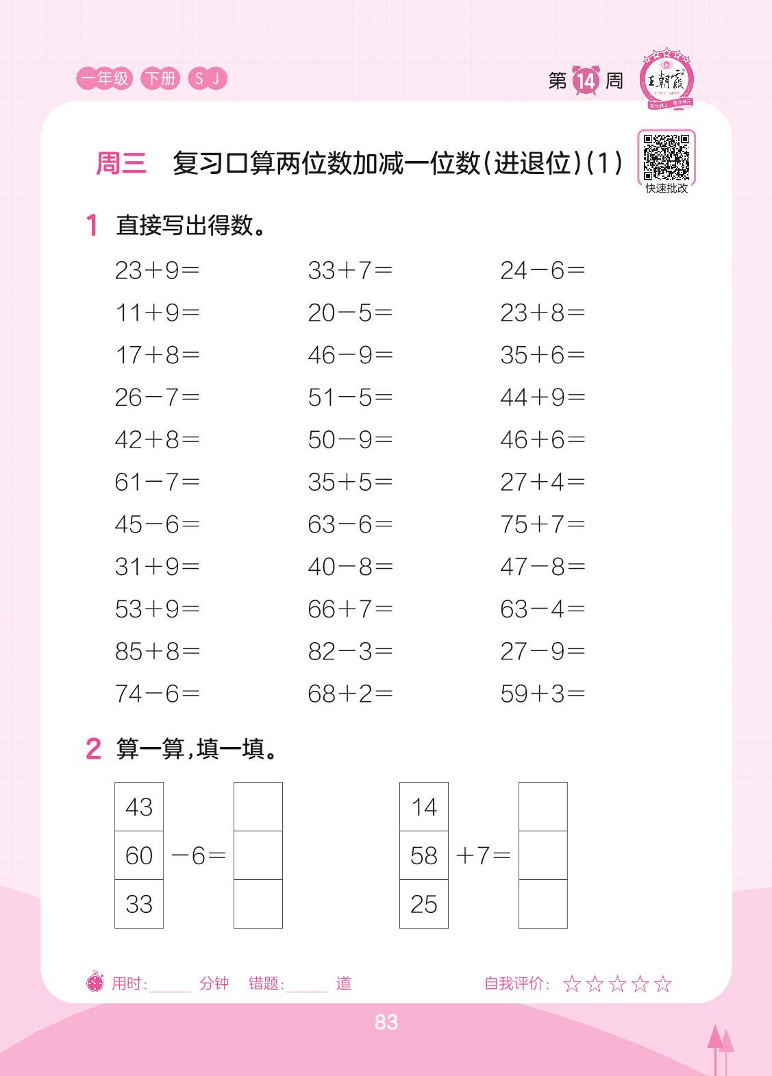 2023下册一年级数学苏教版 第14周 周三