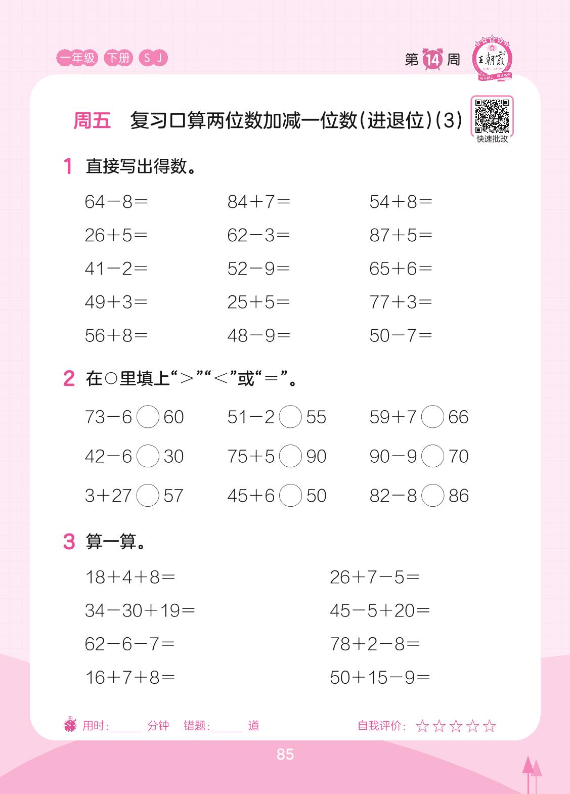 2023下册一年级数学苏教版 第14周 周五