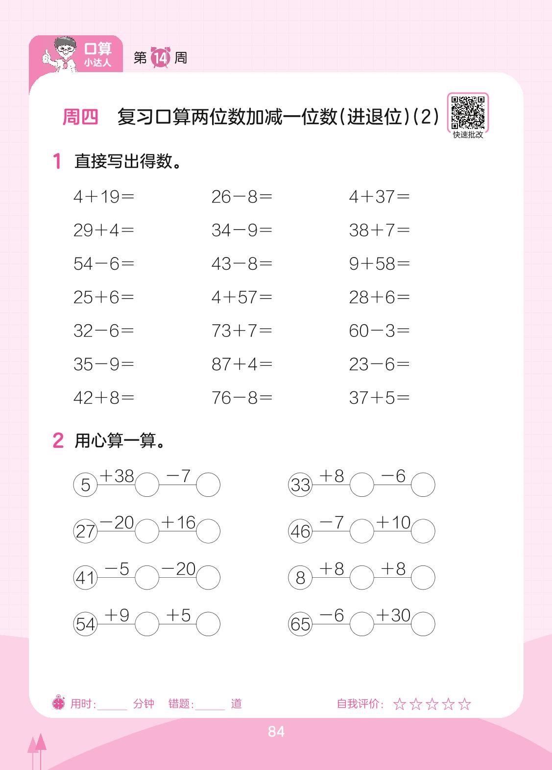 2023下册一年级数学苏教版 第14周 周四