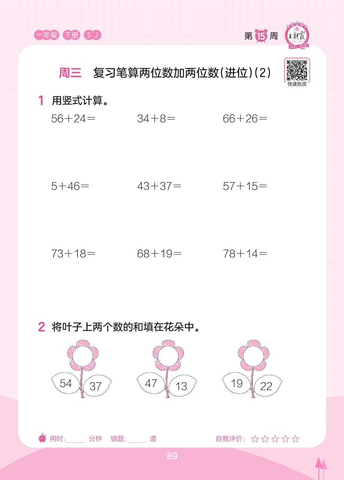 2023下册一年级数学苏教版 第15周 周三