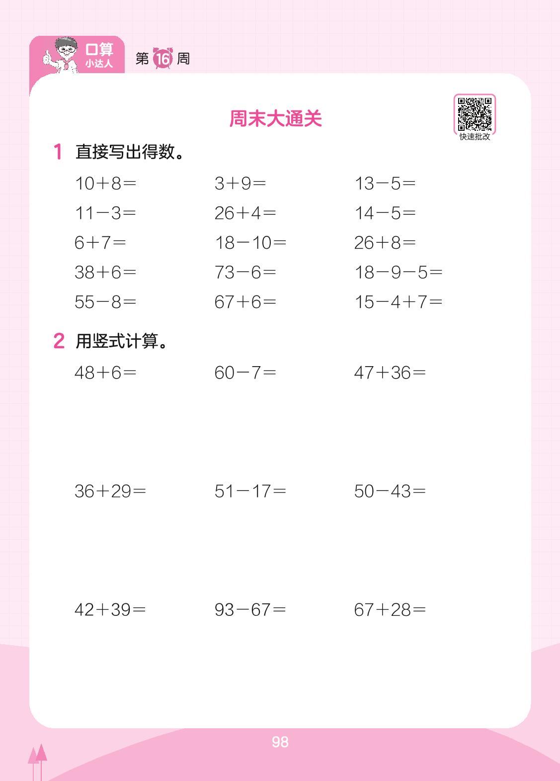 2023下册一年级数学苏教版 第16周 周末大通关
