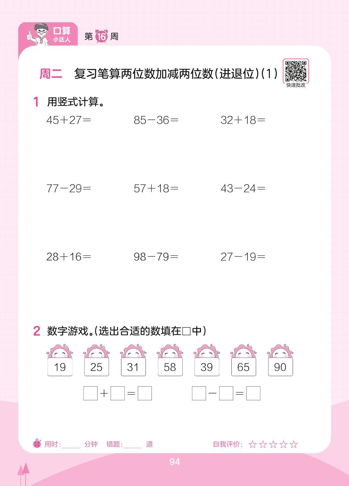 2023下册一年级数学苏教版 第16周 周二