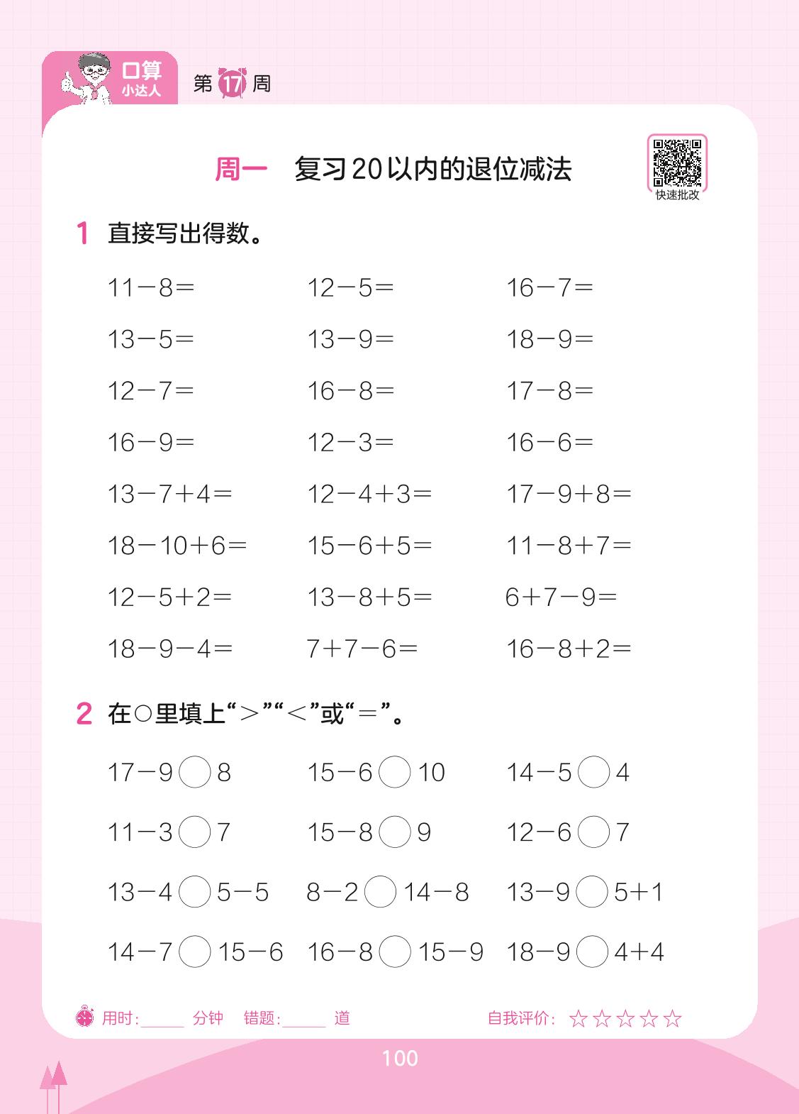 2023下册一年级数学苏教版 第17周 周一