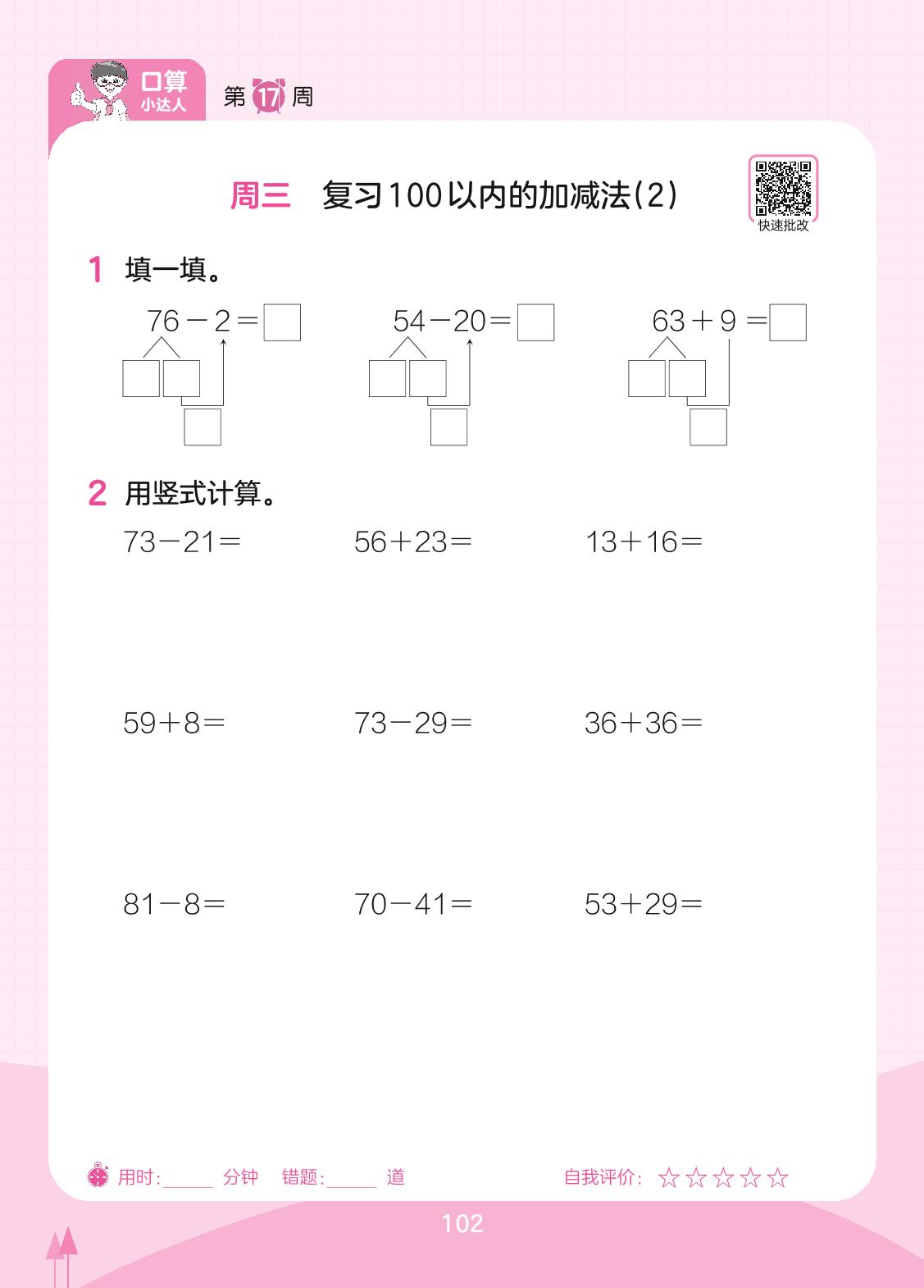 2023下册一年级数学苏教版 第17周 周三