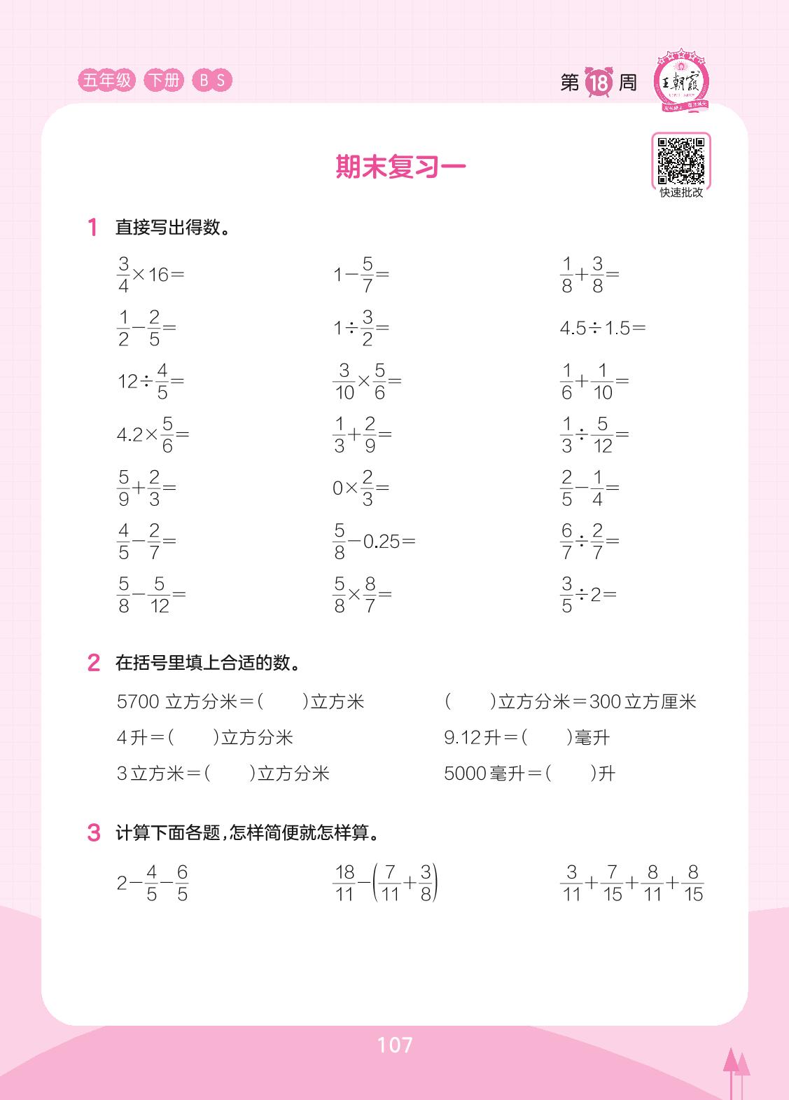 2023下册五年级数学北师版 第18周 期末复习一