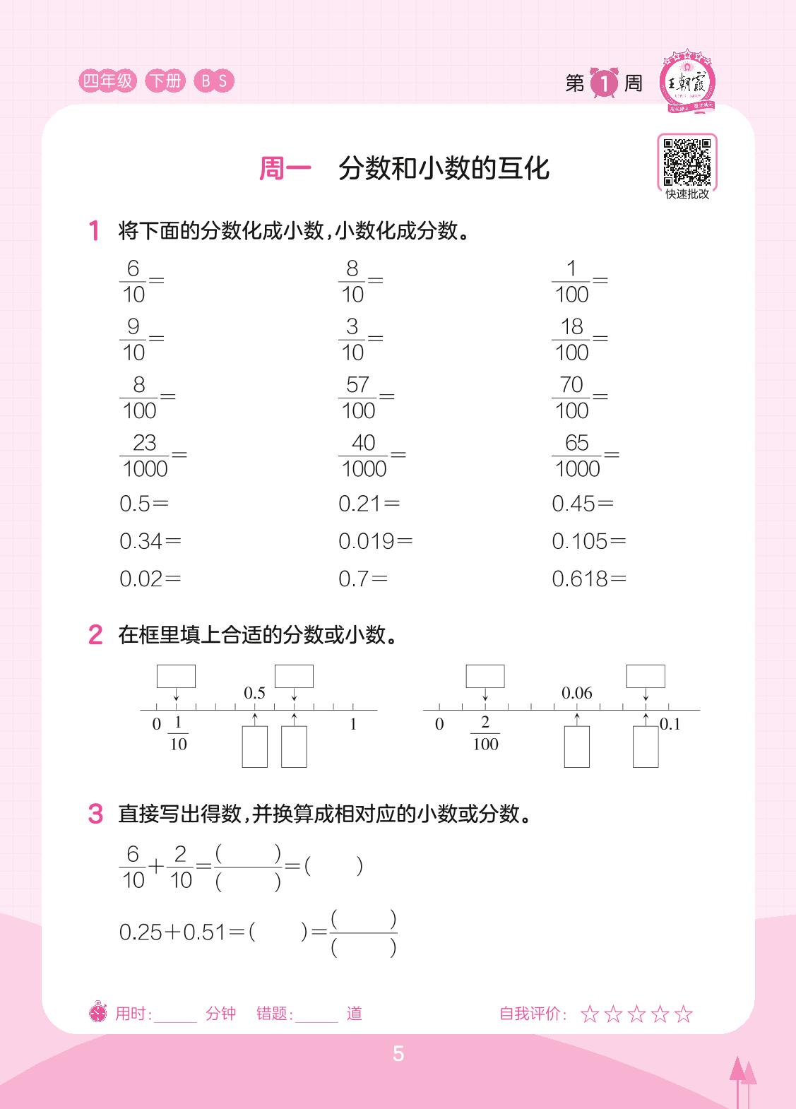2023下册四年级数学北师版 第1周 周一
