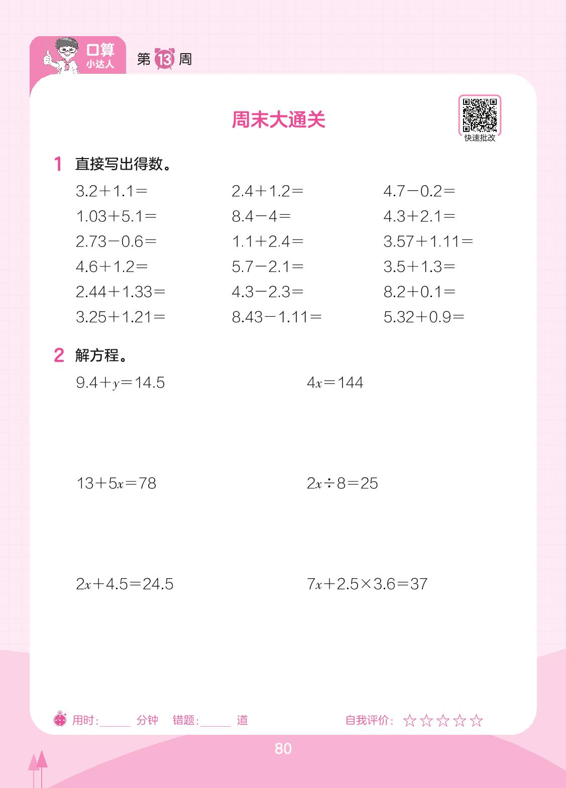 2023下册四年级数学北师版 第13周 周末大通关