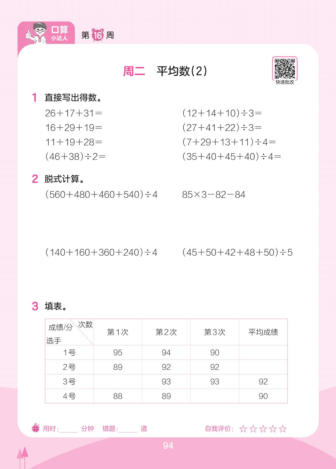 2023下册四年级数学北师版 第16周 周二