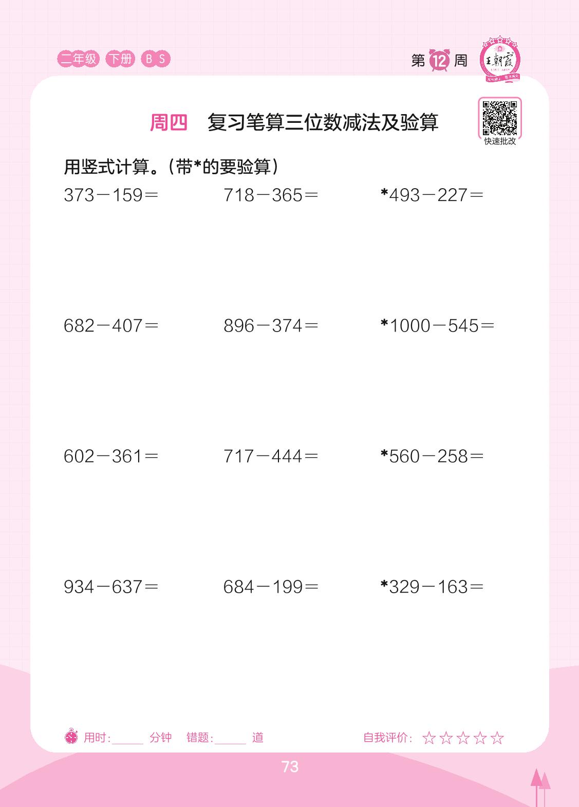 2023下册二年级数学北师版 第12周 周四