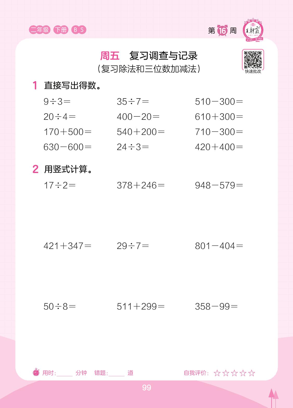 2023下册二年级数学北师版 第16周 周五