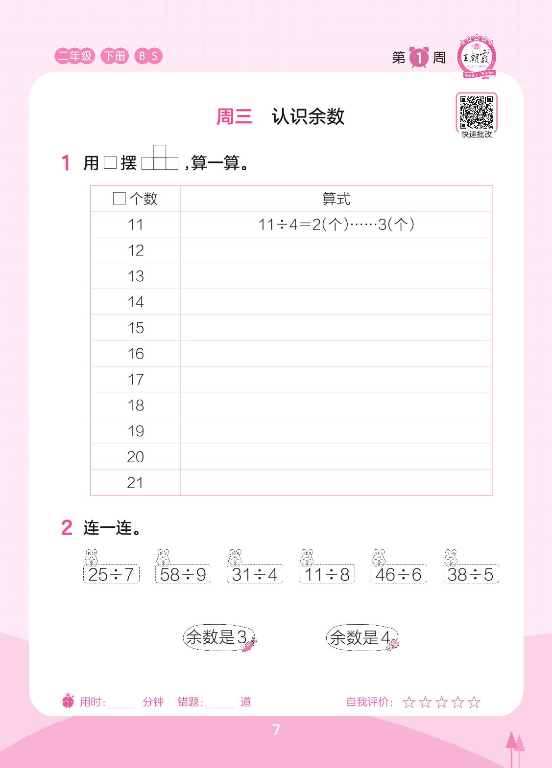 2023下册二年级数学北师版 第1周 周三