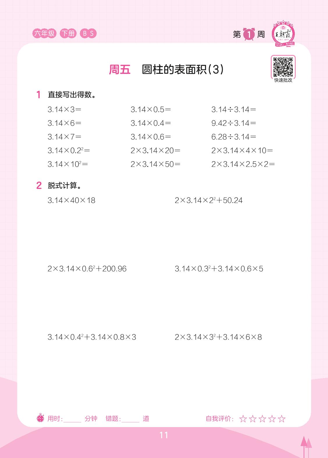 2023下册六年级数学北师版 第1周 周五