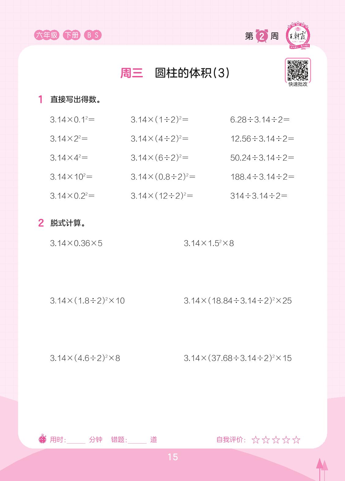 2023下册六年级数学北师版 第2周 周三
