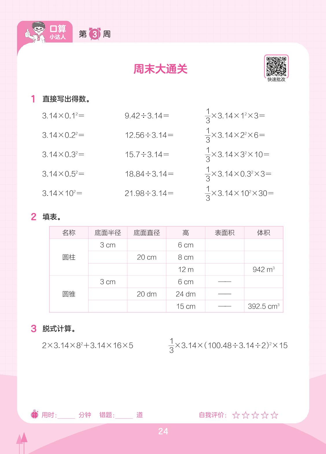 2023下册六年级数学北师版 第3周 周末大通关