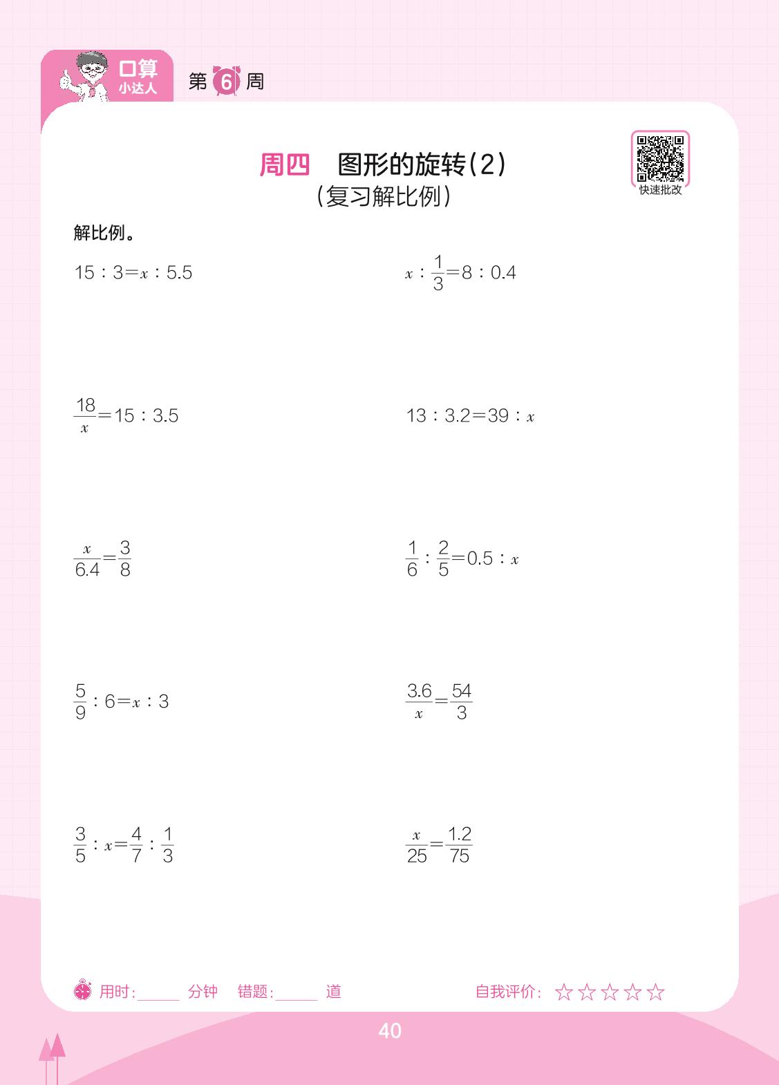 2023下册六年级数学北师版 第6周 周四